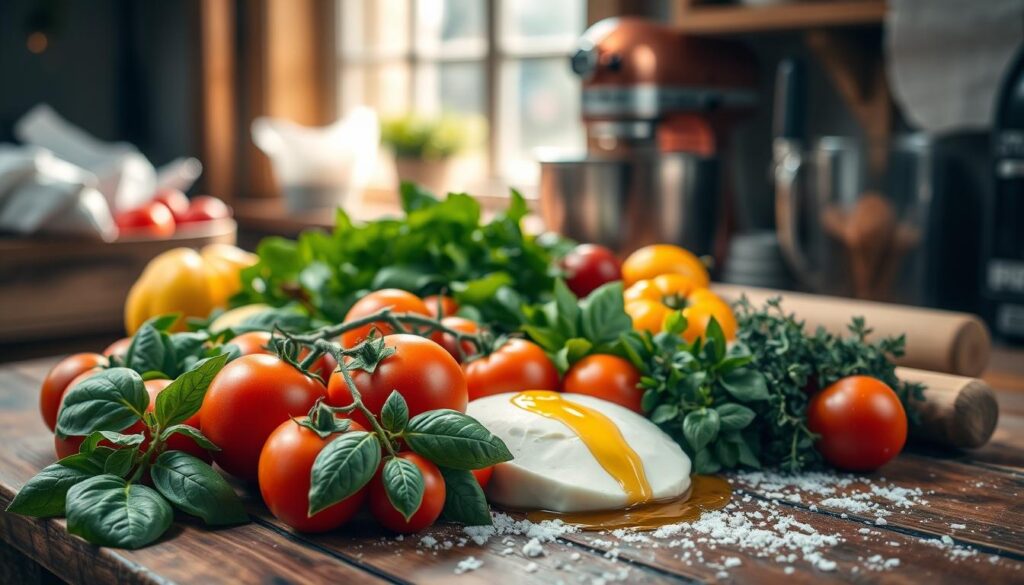 At the heart of a great pizza is the quality of its ingredients. Using fresh ingredients is key to a delicious pizza. Many people choose fresh ingredients for their homemade pizzas. This ensures their pizza is tasty and healthy.