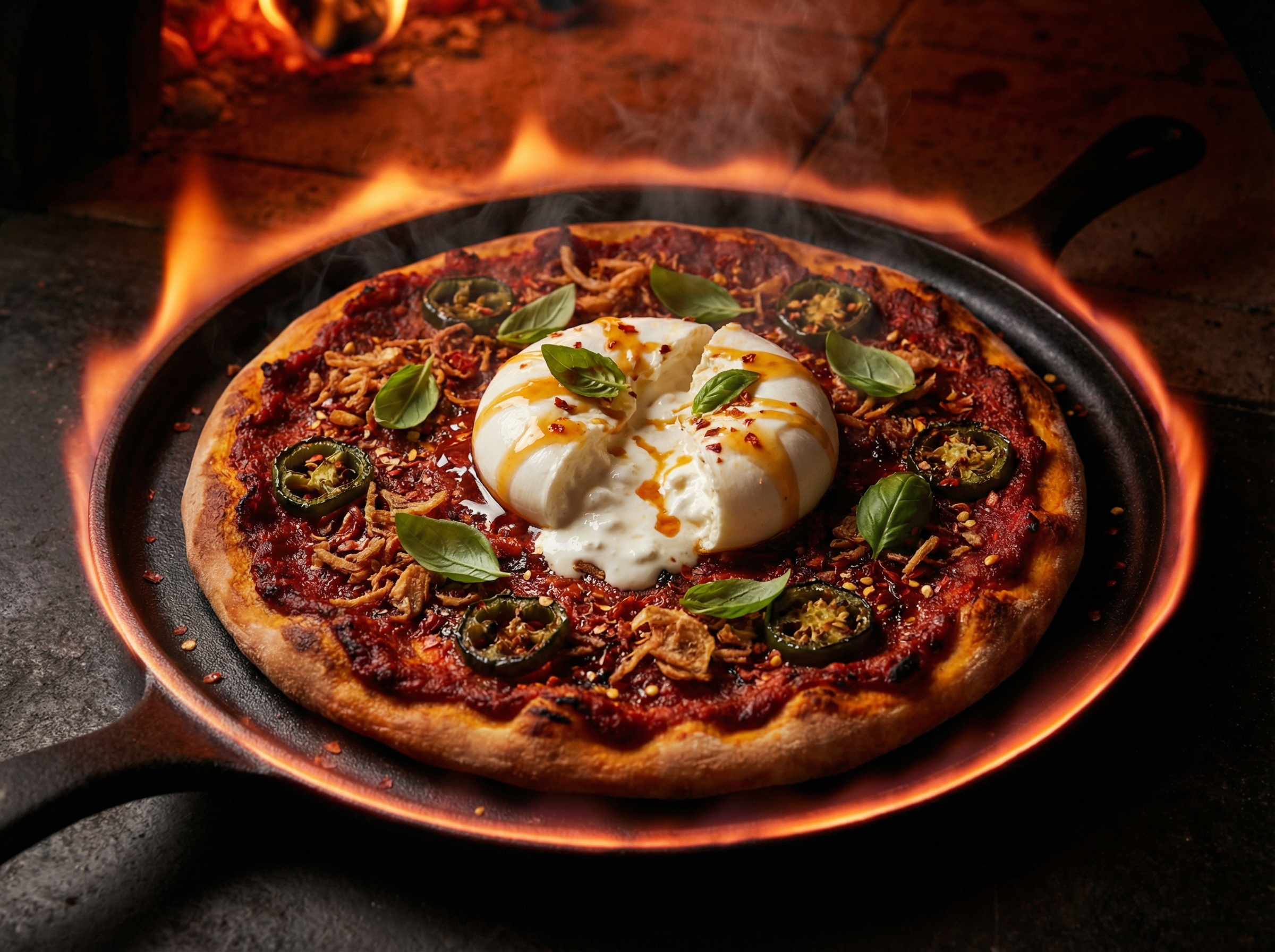 Spicy nduja, jalapeños, hot honey, burrata — Black Box Pizzaco Dubai