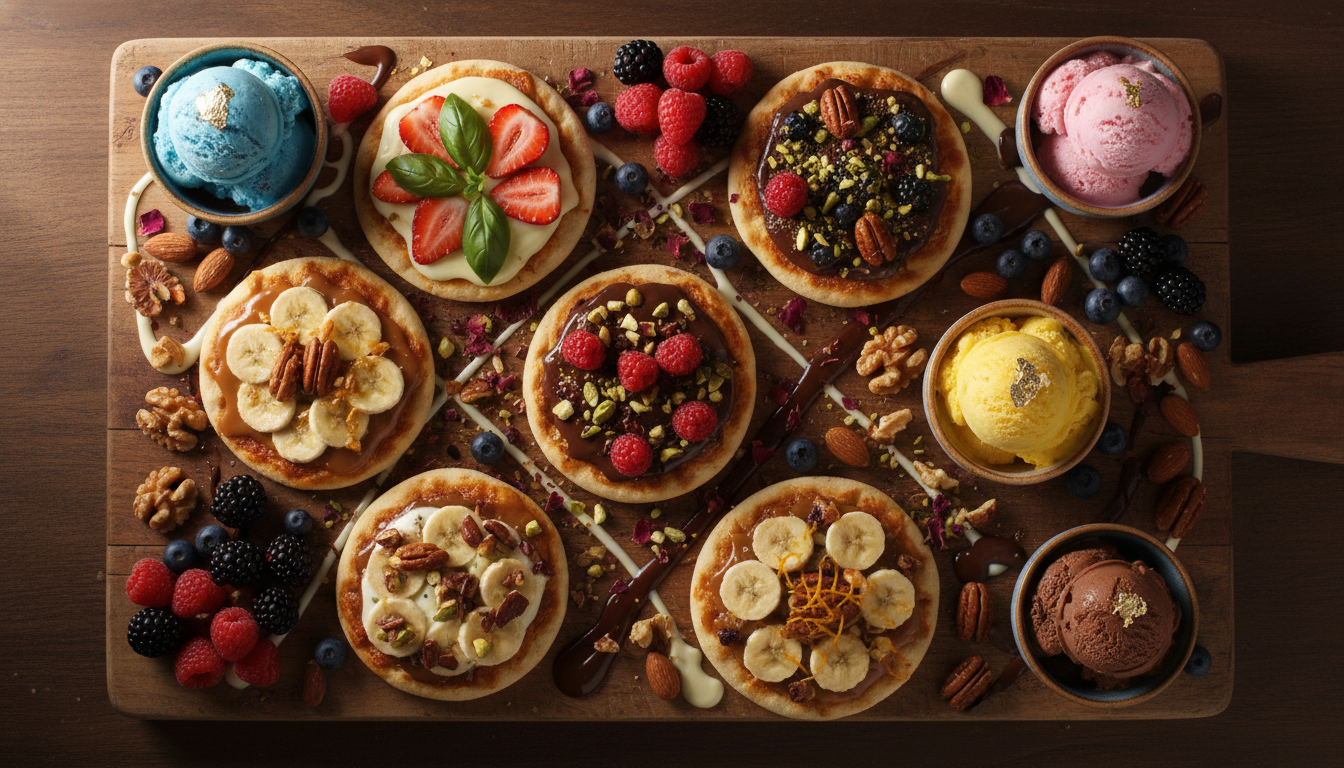 Introducing our most indulgent creation yet: The Dessert Pizza Board. A warm, golden crust topped with chocolate, fruits, and sweet drizzles, served with a side of premium vanilla ice cream.